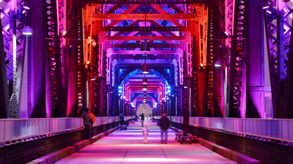 The Big Four Bridge features a gradual ramp (no stairs required) leading to panoramic views over the Ohio River. It’s wide enough for comfortable passing and offers plenty of rest areas.